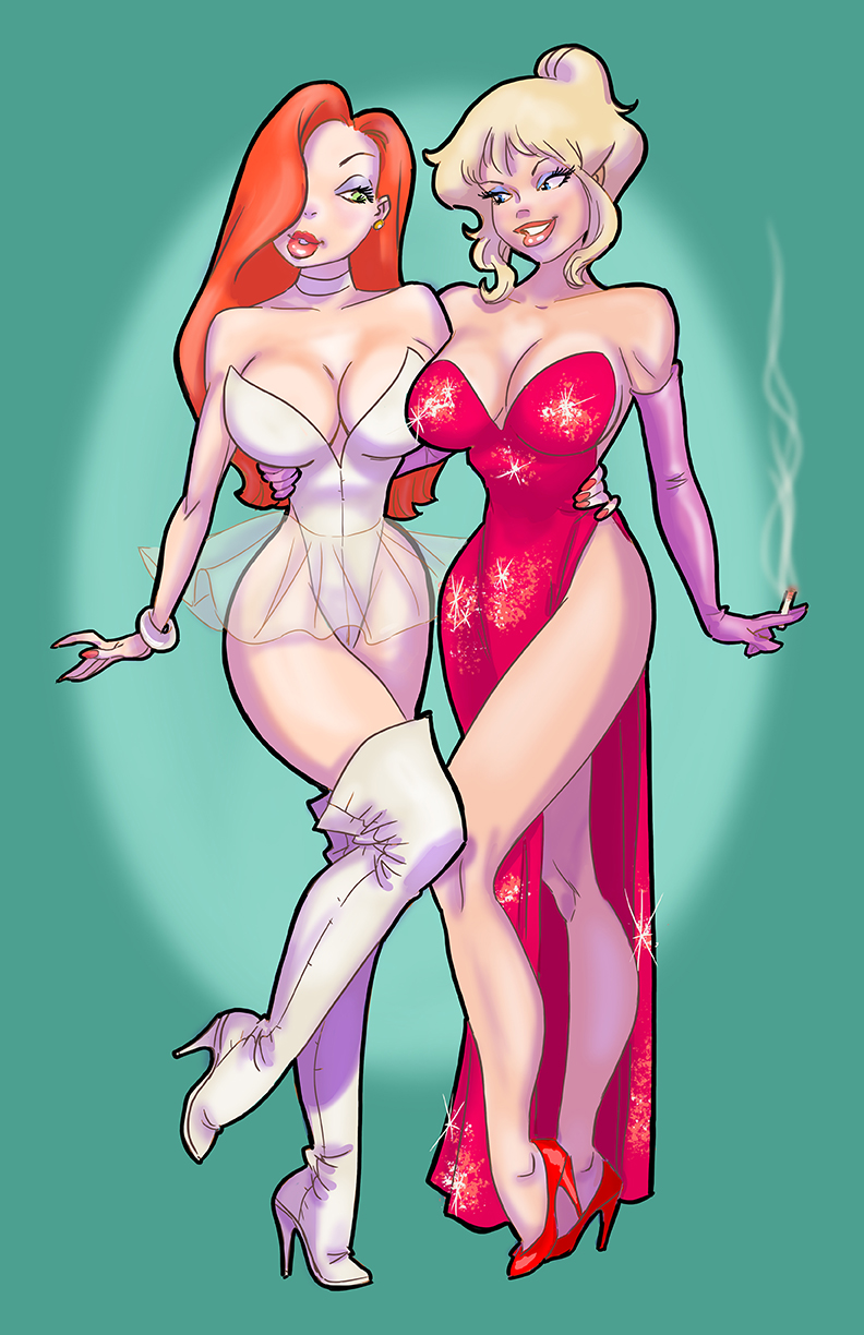 Jessica rabbit and Holli Would switch their iconic dresses in this 11x17 signed print