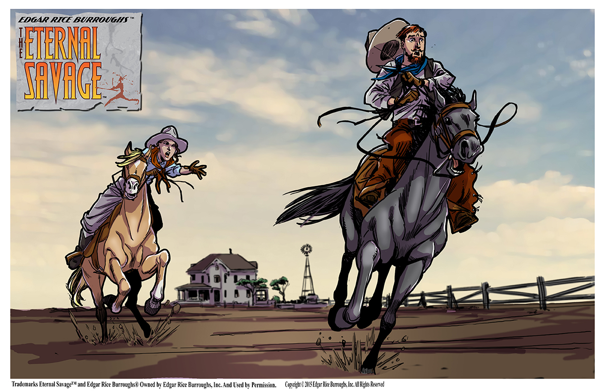 an 11x17 signed print of Victoria and Barney Custer on the ranch in Nebraska based on the book by Edgar Rice Burroughs