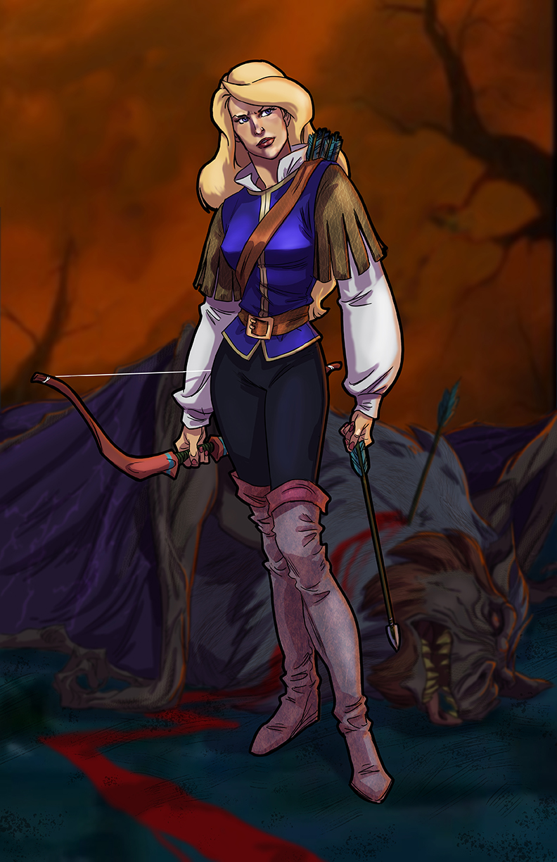 an 11x17 signed print of Odette from the Swan Princess dressed as Derek and having defeated the Great Animal all by herself